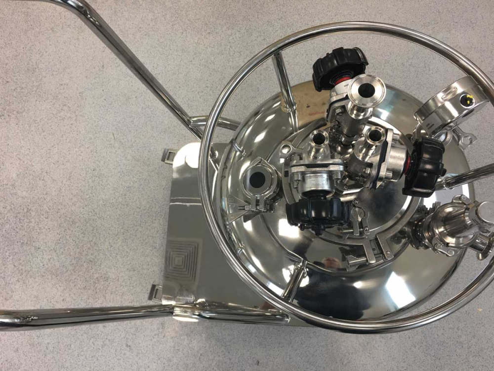 Vessels for mixing and filtering drug solutions (volumes 100 L and 18 L). 2 mobile tanks made of stainless steel for filtering and preparing the mixture. 2 containers of 100 L for preparing the mixture. SIP mobile station. Implementation of IQ / OQ.