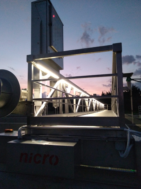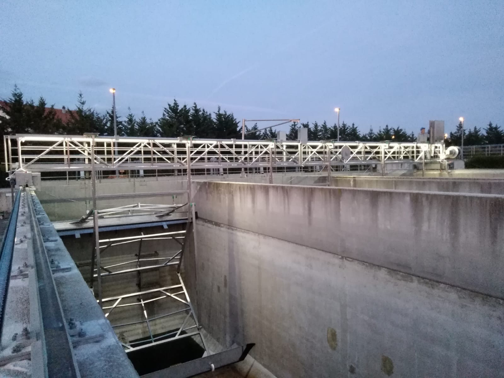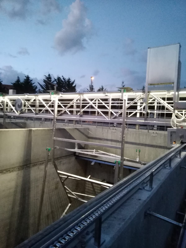In order to prevent corrosion caused by increased chloride content in waste water and air, the entire structure of the drawbridge must be made of stainless steel, AISI 316L/W.Nr. 1.4404.